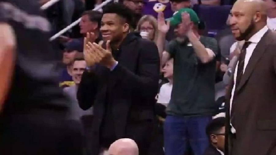 Μάλιστα όταν κάποια στιγμή ακούστηκε από την κερκίδα το «Lets Go Bucks», ο Γιάννης χειροκρότησε κι εκείνος με το χαμόγελο ζωγραφισμένο στο πρόσωπό του, θέλοντας να εμψυχώσει την ομάδα του.