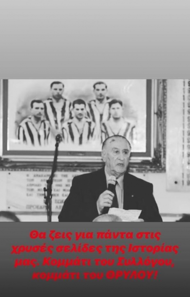 «Θα ζεις για πάντα στις χρυσές σελίδες της ιστορίας μας… Κομμάτι του Συλλόγου, κομμάτι του ΘΡΥΛΟΥ» έγραψε ο Καραπαπάς.