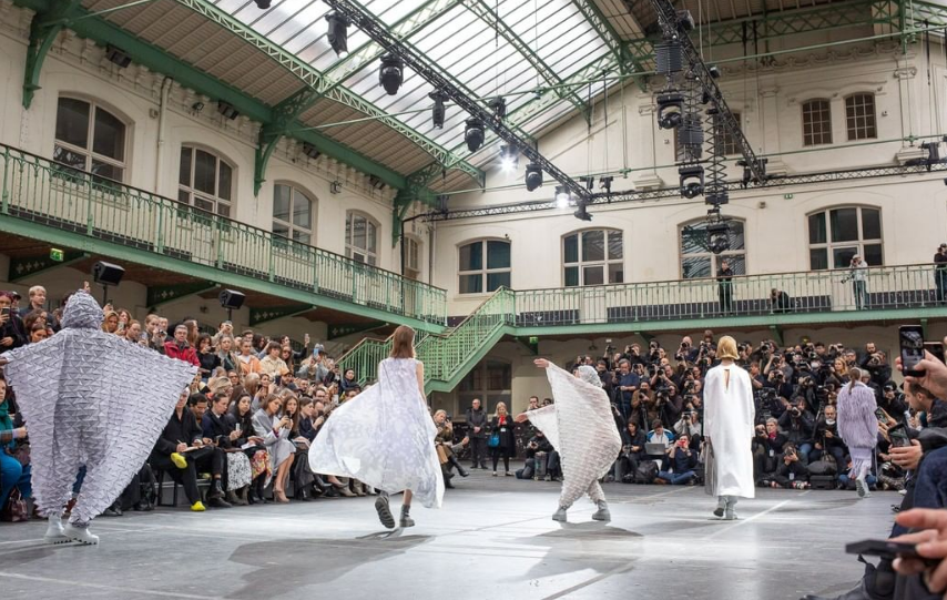 Κατά τη διάρκεια του show, δύο μοντέλα βάδισαν στην πασαρέλα φορώντας λαμπυρίζοντα κορμάκια από αραχνοΰφαντο ύφασμα, διπλωμένο σε περίτεχνα μοτίβα οριγκάμι.