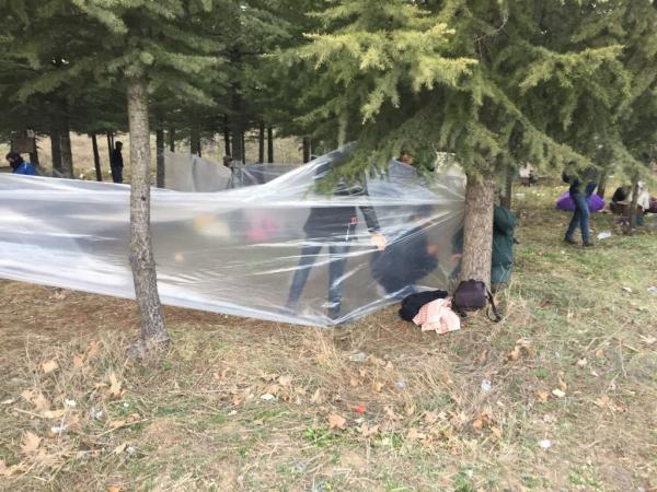 Πήραμε τον δρόμο της επιστροφής με την ελπίδα να βρούμε μετανάστες στην Ανδιανούπολη. Στον δρόμο συνέβη κάτι απρόσμενο. Πλησίον της Εθνικής Οδού, σε ένα κλειστό βενζινάδικο στα όρια της πόλης, εκατοντάδες άτομα έστηναν έναν πρόχειρο καταυλισμό από νάυλον. Ήταν αρκετοί από αυτούς που οι Τούρκοι είχαν εκτοπίσει από το Doyran. Κατάγονταν από διάφορες χώρες όπως το Αφγανιστάν, το Ιράκ, το Ιράν και η Παλαιστίνη.