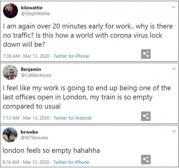 «Έφτασα στη δουλειά 20 λεπτά νωρίτερα. Έτσι μοιάζει ένας κόσμος με κοροναϊό» αστειεύεται ένας χρήστης του δημοφιλούς μέσου κοινωνικής δικτύωσης.