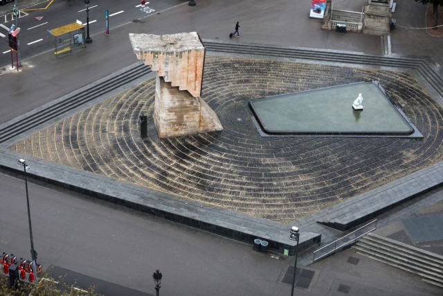 Η συνήθως κατάμεστη από κόσμο πλατεία Puerta del Sol της Μαδρίτης ήταν άδεια σήμερα και το μόνο που κυκλοφορούσε ήταν ένα στρατιωτικό όχημα περιπολίας. Καταστήματα και εστιατόρια ήταν κλειστά.