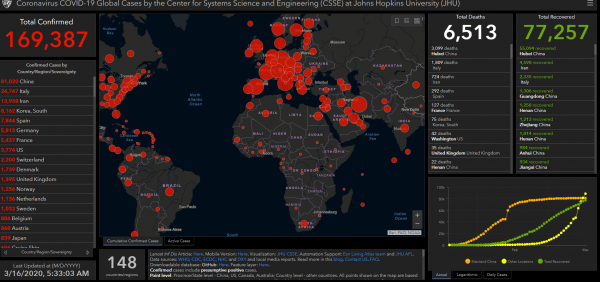 Η Ευρώπη παραμένει το νέο επίκεντρο ενώ οι νεκροί παγκοσμίως έχουν φτάσει τους 6.513 και τα κρούσματα στα 169.357.
