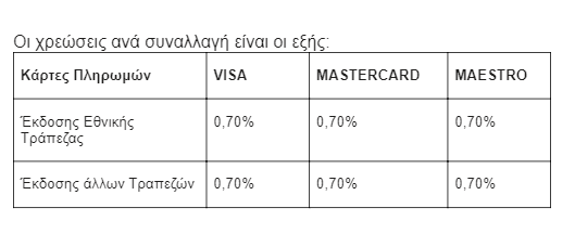 Για συναλλαγές καρτών που θα πραγματοποιούνται στα site των Μηχανικών, προσφέρεται η δυνατότητα διασύνδεσης με το σύστημα της Τράπεζας, για τους σκοπούς της έγκρισης και της εκκαθάρισης των εντολών χρέωσης καρτών.