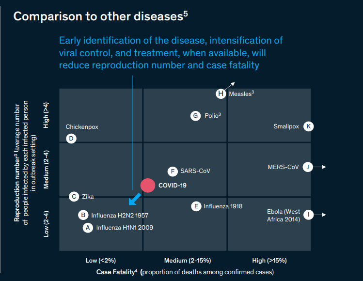Η Κίνα και η Ανατολική Ασία θα έχουν ήδη δείγματα ανάκαμψης σε οικονομικό επίπεδο, αλλά η Ευρώπη και οι ΗΠΑ θα έχουν ακόμη περιορισμούς σε ταξίδια-αερογραμμές αλλά σε λιγότερο βαθμό. Το 2020 ο παγκόσμιος GDP θα πέσει.