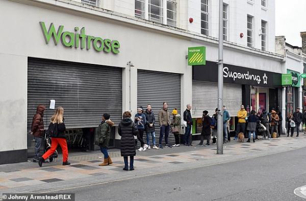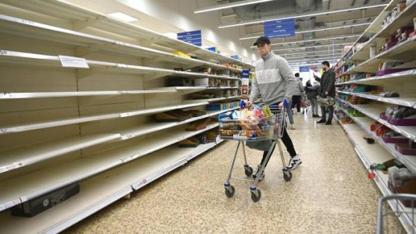 Σε σούπερ μάρκετ σε όλη τη χώρα, οι καταναλωτές εμφανίζονταν, ωστόσο, τρομοκρατημένοι. Ο ένας διάδρομος μετά τον άλλο άδειαζαν, ενώ σε πολλά μεγάλα σούπερ μάρκετ είχαν μείνει μόνο παγωτό και σοκολατένια πασχαλινά αυγά. Δημοσιογράφοι του Reuters είδαν να σχηματίζονται τεράστιες ουρές γύρω από κάποια σουπερ μάρκετ σήμερα.