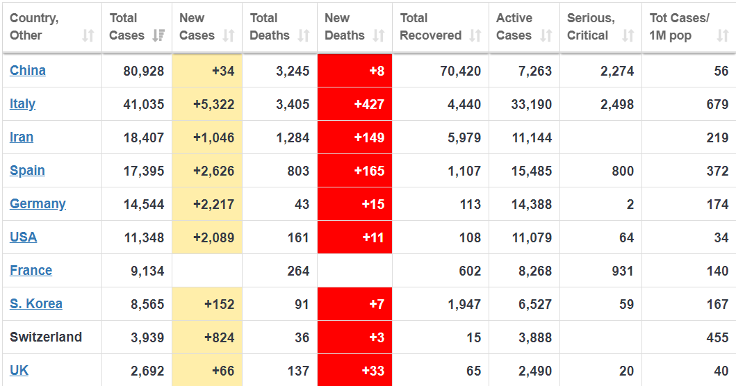 Το δράμα που ζει η γειτονική χώρα δεν έχει τέλος, αφού το τελευταίο -μόνο- 24ωρο έχασαν τη ζωή τους ακόμα 427 άνθρωποι, ανεβάζοντας τον συνολικό αριθμό στους 3.405. Αυτό σημαίνει ότι πλέον η Ιταλία είναι η χώρα με τους περισσότερους νεκρούς στον κόσμο, ξεπερνώντας την Κίνα, τη χώρα από την οποία ξεκίνησε ο φονικός ιός, η οποία έχει 3.245 νεκρούς και ο ιός βρίσκεται σε ύφεση.