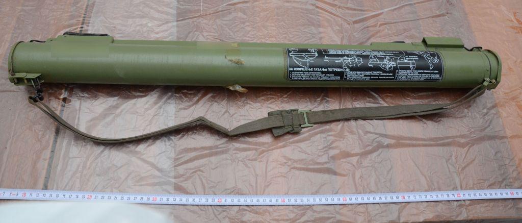 εκτοξευτήρας ρουκετών αντιαρματικού όπλου, τύπου «RPG» με μεταλλικό τρίποδο,