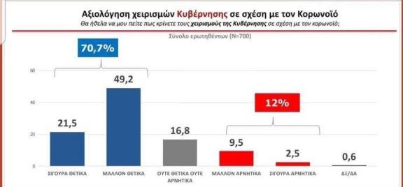 Συγκεκριμένα, το 70,7% των πολιτών θεωρεί «σίγουρα και μάλλον θετικά» τα μέτρα της κυβέρνησης.