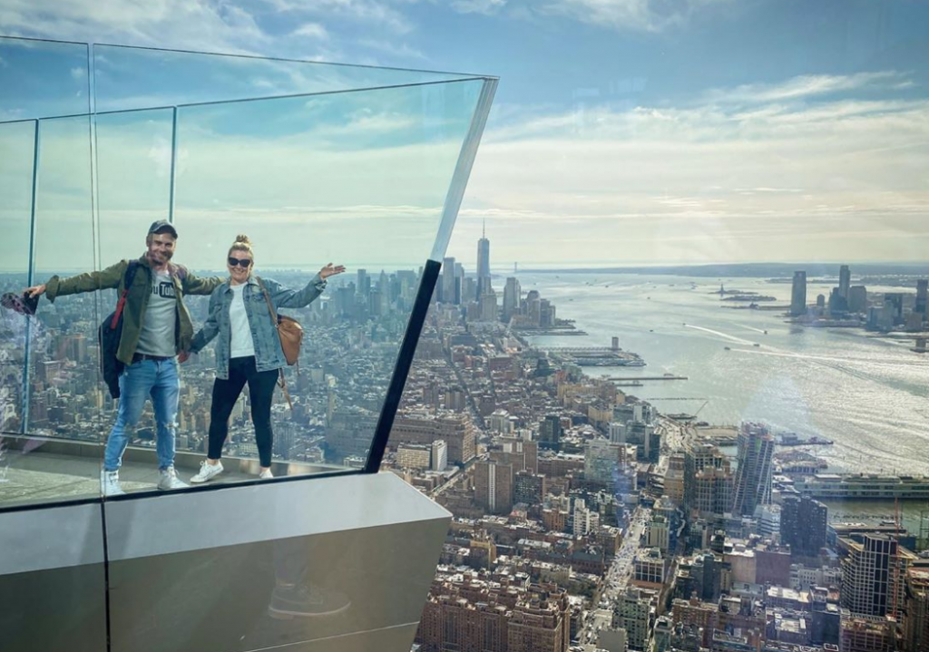 Στο μέσο της πλατφόρμας, οι επισκέπτες με θάρρος διασχίζουν μια υάλινη επιφάνεια, βλέποντας τους δρόμους του Μεγάλου Μήλου, εκατό ορόφους πιο χαμηλά.