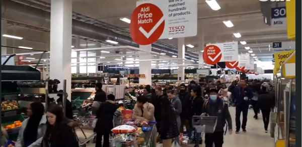 Ένα τεράστιο πλήθος μαζεύτηκε σε σούπερ μάρκετ της αλυσίδας Tesco, και απογύμνωσε τα ράφια, μη τηρώντας ούτε μία οδηγία ασφαλείας.