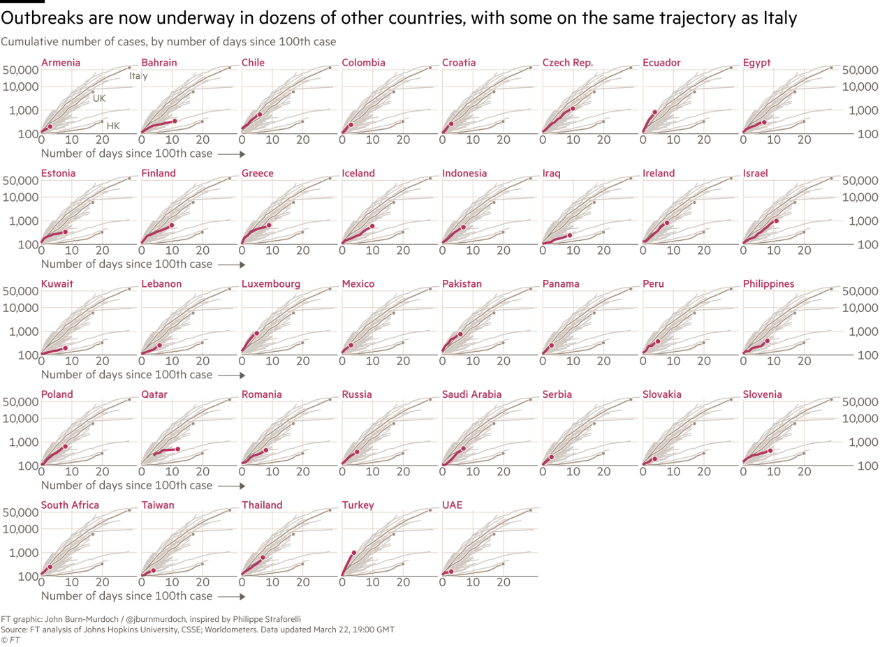 Στις περισσότερες δυτικοευρωπαϊκές χώρες ο αριθμός των νέων κρουσμάτων αυξάνεται κατά περίπου 33% τη μέρα, ένδειξη ότι χώρες όπως η Ισπανία για παράδειγμα μπορεί να αντιμετωπίσουν προκλήσεις ανάλογες με αυτές που αντιμετωπίζει η Ιταλία.