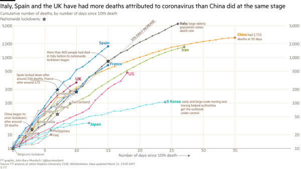 Οι Financial Times συγκέντρωσαν τα δεδομένα από κάθε χώρα και τα προβάλλουν σε ένα διάγραμμα. Σύμφωνα με αυτό το διάγραμμα φαίνεται ότι η Ελλάδα μέχρι στιγμής παρουσιάζει καλή εικόνα.