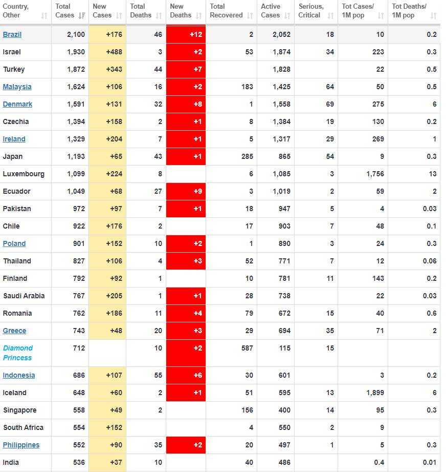 H λίστα των κρατών και των δεδομένων σχετικά με τα κρούσματα και τους νεκρούς