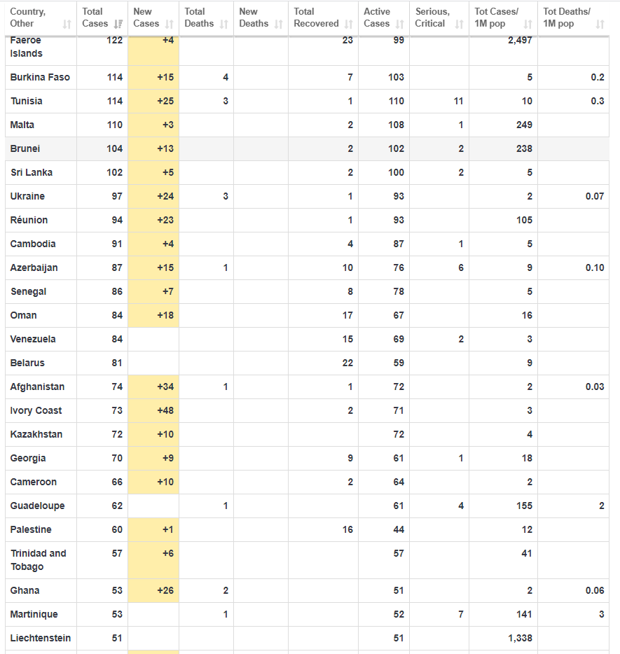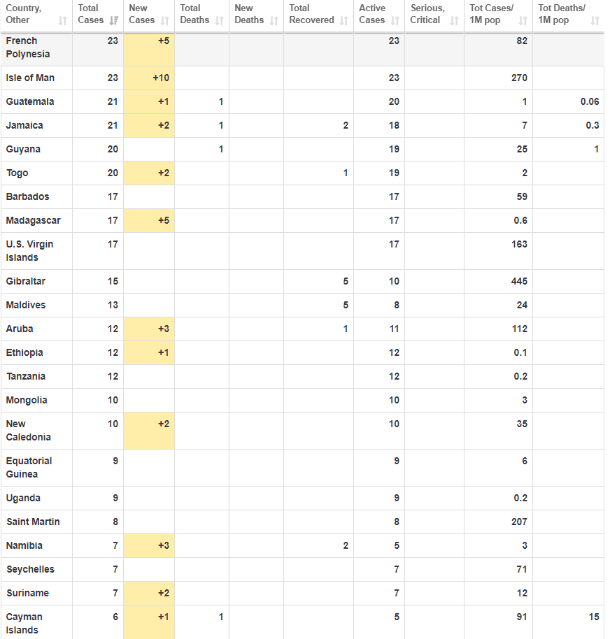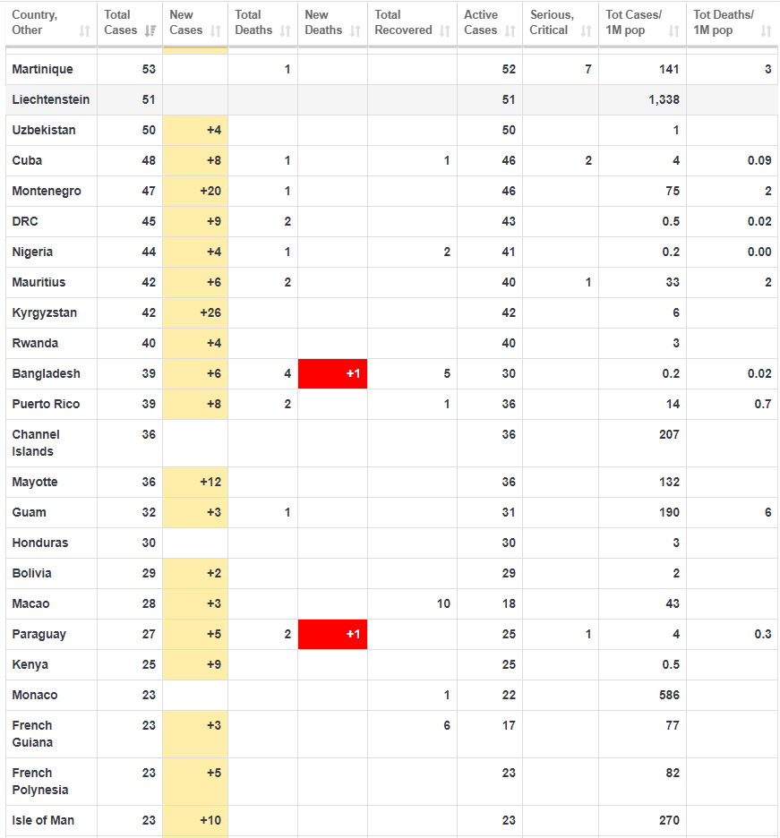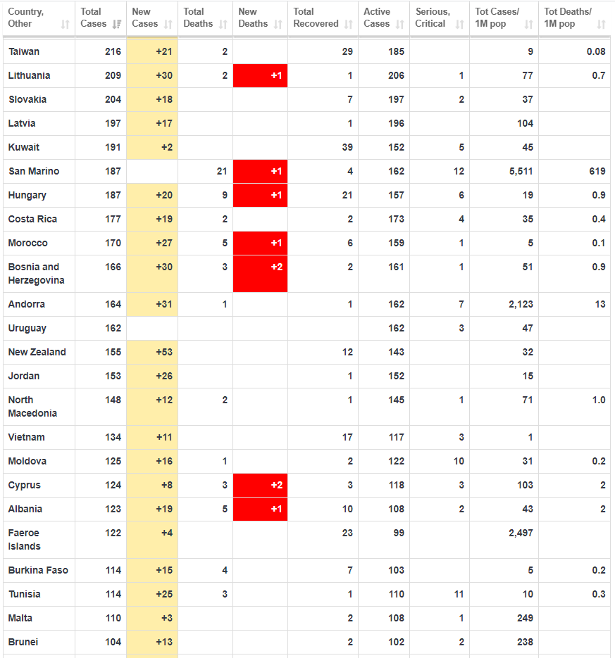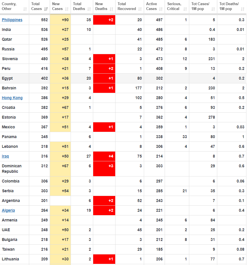 Χαρακτηριστικό ωστόσο συνιστά το γεγονός ότι στην Κίνα τα νέα κρούσματα έχουν αρχίσει να αυξάνονται. με 78 νέα κρούσματα από τα οποία η πλειοψηφία ήταν εισαγόμενα από άλλες χώρες μέσω ταξιδιών, ενώ οι νέοι θάνατοι ήταν 7.