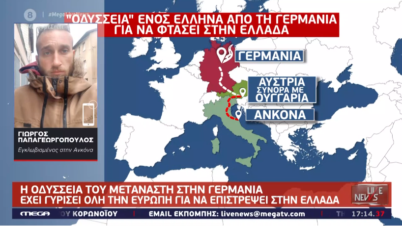 Ο λόγος για τον Γιώργο Παπαγεωργόπουλο, ο οποίος απευθύνει μέσω του MEGA δραματική έκκληση, ώστε να βρεθεί λύση και να επαναπατριστεί, όπως τόσοι Έλληνες τα τελευταία εικοσιτετράωρα.
