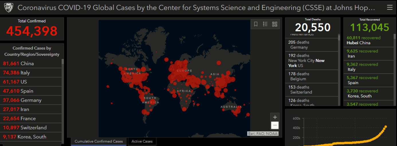 Οι ΗΠΑ είναι η τρίτη χώρα σε αριθμό επιβεβαιωμένων κρουσμάτων, πίσω από την Κίνα και την Ιταλία.