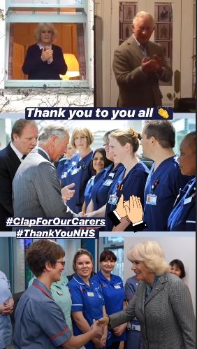 Την ίδια στιγμή, ο Κάρολος με τη σύζυγό του Καμίλα, μοιράστηκαν επίσης στα social media, ένα αφιέρωμα στους εργαζόμενους στο Εθνικό Σύστημα Υγείας, δημοσιεύοντας ένα κολάζ φωτογραφιών που τους δείχνει να χαιρετά ιατρικό προσωπικό, γράφοντας:
