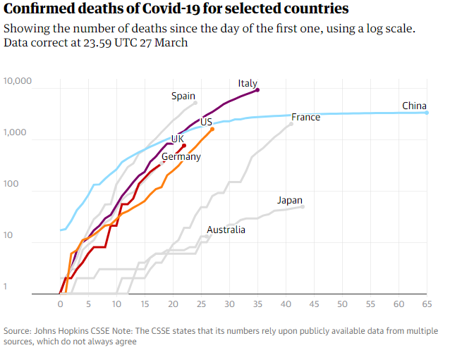 Η Ιταλία και η Ισπανία είναι οι πιο πληγείσες χώρες όσον αφορά τους θανάτους.