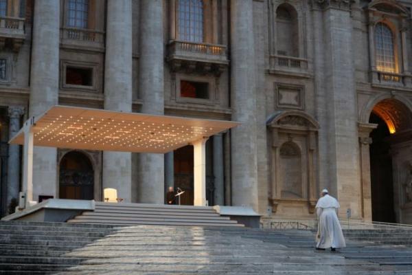 «Μεγάλο σκότος κάλυψε τις πόλεις μας, τους δρόμους και τις πλατείες μας. Κυρίευσε τις ζωές μας, γεμίζοντας τα πάντα με μια απελπιστική σιωπή, ένα απελπιστικό κενό, τα οποία παραλύουν κάθε τι στο πέρασμά τους. Το αισθανόμαστε διάχυτο παντού, είναι ξεκάθαρο στα βλέμματα και στις κινήσεις μας», υπογράμμισε ο ποντίφικας.