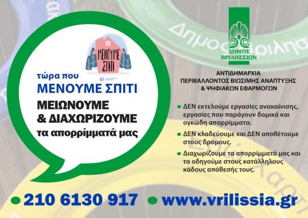 Έχουμε την πολιτική βούληση, υλοποιούμε και θα συνεχίσουμε να εφορμόζουμε ακόμη περισσότερα βιώσιμα μοντέλα στον Δήμο Βριλησσίων.