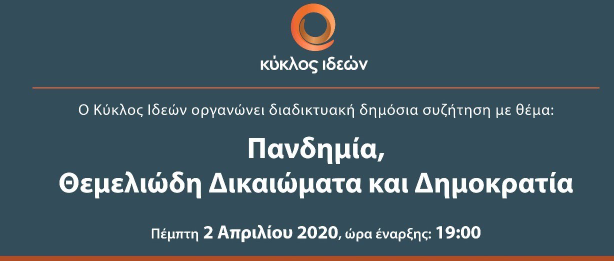 Διαδικτυακή δημόσια συζήτηση με θέμα: «Πανδημία, Θεμελιώδη Δικαιώματα και Δημοκρατία», οργανώνει σήμερα στις 7 το απόγευμα ο Κύκλος Ιδεών.