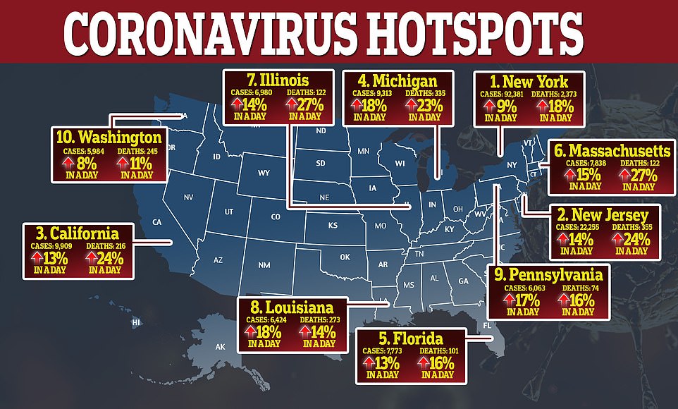 Τα στοιχεία για τη Νέα Υόρκη, ειδικά, είναι συγκλονιστικά αφού συγκεντρώνει σχεδόν τα μισά από τα συνολικά νούμερα: 2.373 άνθρωποι έχουν χάσει τη ζωή τους από τον κοροναϊό στην πολιτεία της Νέας Υόρκης, ενώ τα κρούσματα είναι πάνω από 92.000.