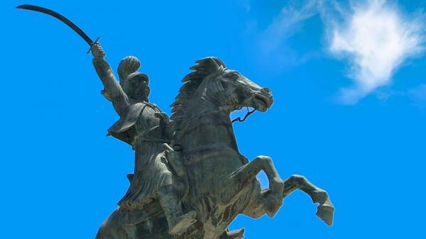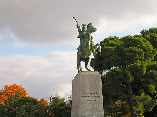 Απέναντι από τους ανδριάντες των αείμνηστων δικαστών, στην πλατεία Άρεως, δεσπόζει το άγαλμα του εφίππου στρατηγού, του θρυλικού Γέρου του Μοριά.