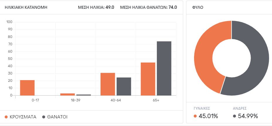 Ενδιαφέρον παρουσιάζουν και τα δεδομένα για το φύλο και τις ηλικίες κρουσμάτων και θυμάτων του ιού.