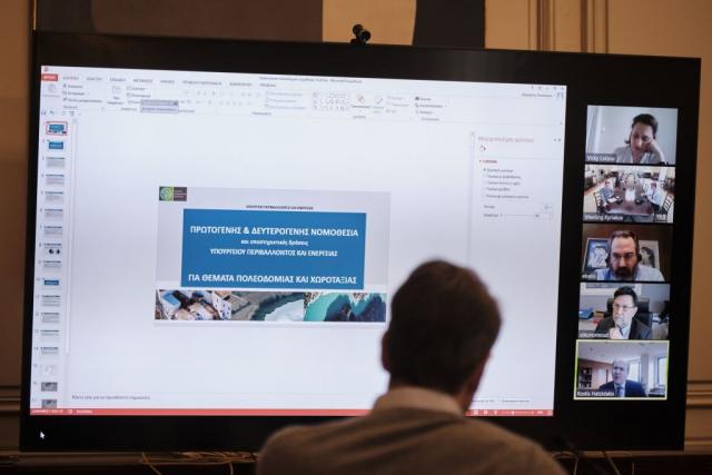 Στο πλαίσιο αυτό, πραγματοποιήθηκε σήμερα στο Μέγαρο Μαξίμου, σύσκεψη μέσω τηλεδιάσκεψης υπό τον Πρωθυπουργό Κυριάκο Μητσοτάκη, για το νέο Χωροταξικό Νομοσχέδιο που θα παρουσιαστεί στο Υπουργικό Συμβούλιο του Απριλίου.