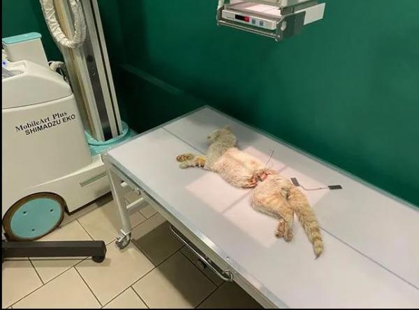 Όπως αναφέρει σε ανάρτησή της η Φιλοζωική Ομάδα, η γάτα μεταφέρθηκε στον κτηνίατρο Φιλήμονα Διαμαντή και έγινε χειρουργείο για να αφαιρεθεί το σύρμα. Το σύρμα είχε στριφτεί με πένσα για να μην μπορεί να βοηθηθεί το ζώο. Στον πρωκτό της γάτας βρέθηκε και ένα μαύρο μπαλόνι.