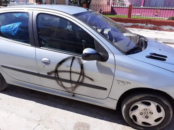 Η επίθεση σημειώθηκε στο διάστημα 1 με 5 τα ξημερώματα, όταν άγνωστοι εισέβαλαν στον κήπο του σπιτιού του κ. Καρατζίκου και με σπρέι αποτύπωσαν πάνω στο αυτοκίνητό του το φασιστικό «στοχάδι».