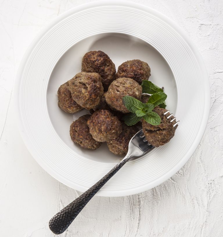 Λαδώνουμε ένα ταψί και βάζουμε τα κεφτεδάκια. Τα ραντίζουμε με το υπόλοιπο ελαιόλαδο.
