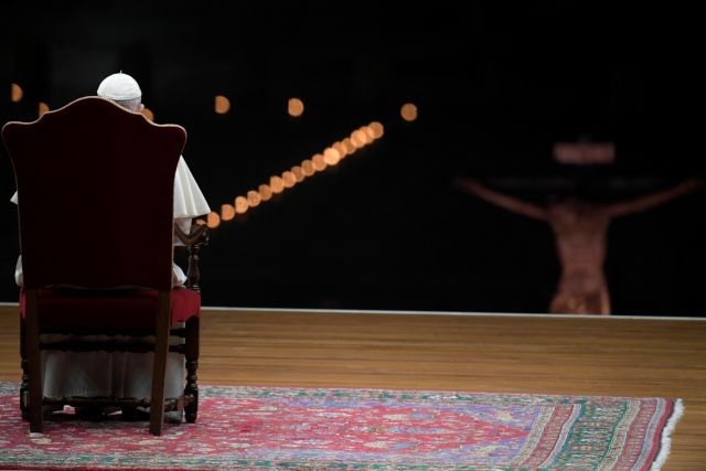 Συγκλονιστικές εικόνες: Ο Πάπας προσεύχεται στο έδαφος για όσους νοσούν από κοροναϊό