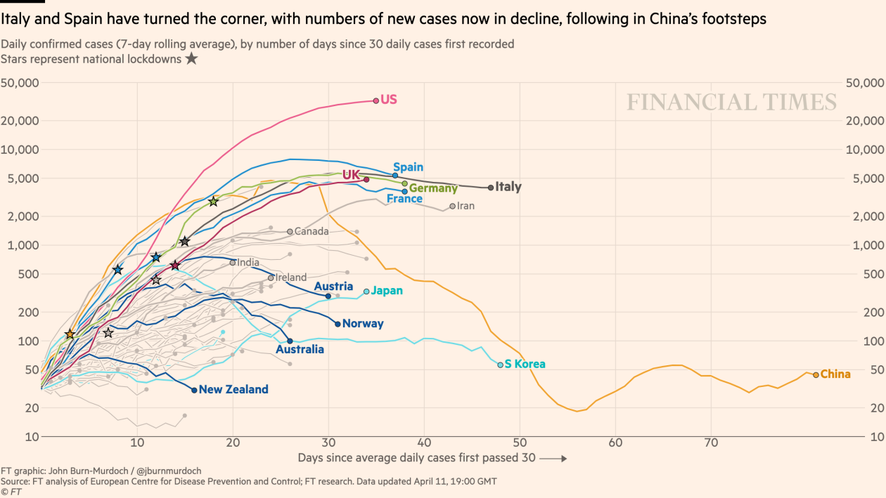 Ο ιός φαίνεται πως έκανε τον κύκλο του – ή πιο σωστά, έφτασε στην κορυφή της καμπύλης του – στην Ιταλία και την Ισπανία.