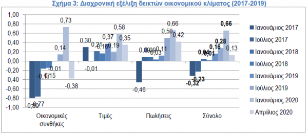 Παρόλα αυτά είναι σημαντικό ότι το οικονομικό κλίμα παρουσιάζει επιδείνωση, αλλά συγκράτηση, η οποία οφείλεται κυρίως στις θετικές προσδοκίες των στελεχών για τις πωλήσεις. Θετικά αξιολογείται ότι παρά τη μεγάλη μείωση στον δείκτη οικονομικού κλίματος, αυτός παραμένει με θετικό πρόσημο.