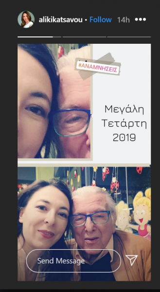 Σε άλλο instastory η Αλίκη Κατσαβού δημοσίευσε ένα χιουμοριστικό video από τον Απρίλη του 2018 με πρωταγωνιστή φυσικά τον αείμνηστο Κώστα Βουτσά.