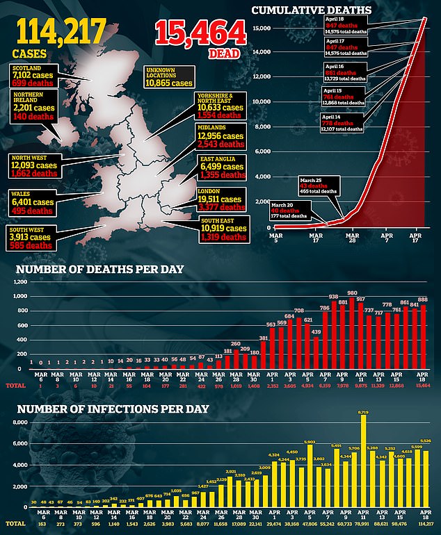 888 νέοι θάνατοι ανακοινώθηκαν στη Βρετανία - πρόκειται για υψηλό επτά ημερών και το τέταρτο μεγαλύτερο νούμερο ημερήσιων θανάτων στο Ηνωμένο Βασίλειο.