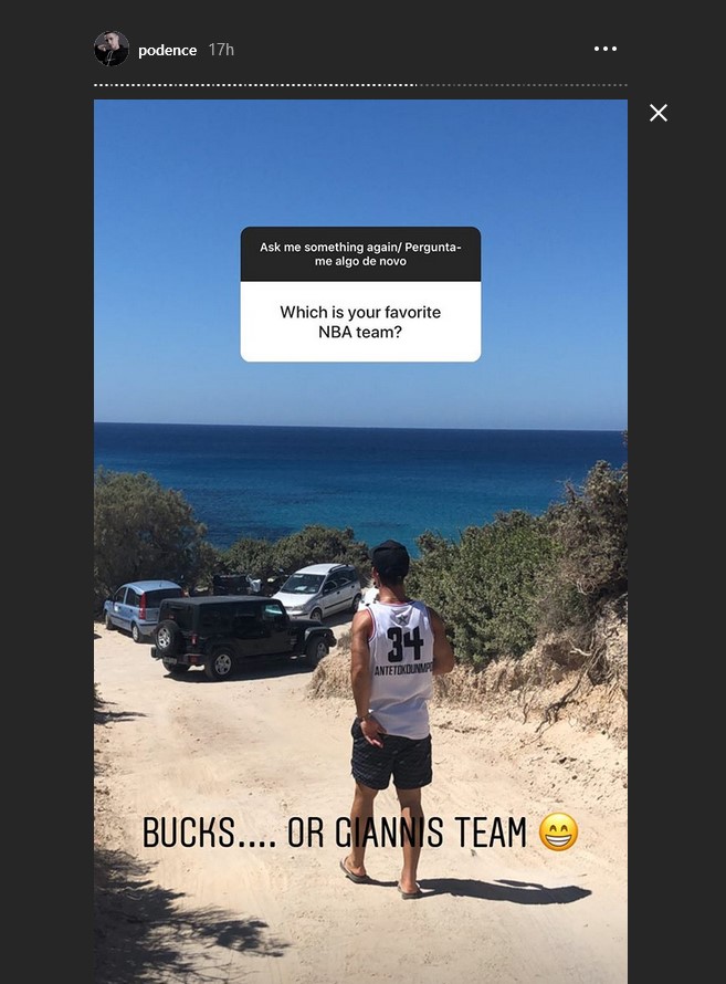 Μάλιστα, ο Ποντένσε ανέβασε στα social media μια φωτογραφία, στην οποία φοράει τη φανέλα του Γιάννη Αντετοκούνμπο.
