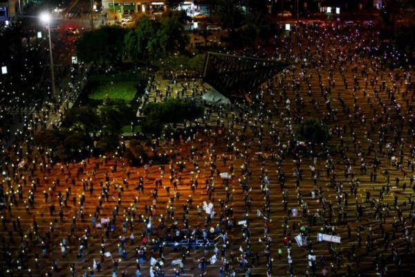 Περίπου 2.000 άτομα συγκεντρώθηκαν στην πλατεία Rabin στο Τελ Αβίβ του Ισραήλ, για να διαμαρτυρηθούν για «αντιδημοκρατικά μέτρα» της κυβέρνησης Νετανιάχου, σε μία μαζική διαδήλωση… προσαρμοσμένη στις έκτακτες συνθήκες που ζούμε λόγω της πανδημίας του κοροναϊού.