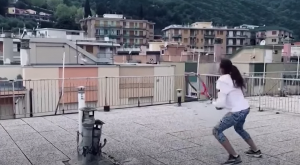 «Το κάναμε για να χαρίσουμε χαμόγελα. Η σκέψη ήρθε επειδή μας έλειπε πάρα πολύ το τένις και από τη στιγμή που τις δύο πολυκατοικίες τις χωρίζουν μόνο δέκα μέτρα, αποφασίσαμε να αρχίζουμε να προπονούμαστε έτσι», εξομολογούνται η 13χρονη Βιτόρια Ολιβέρι και η 11χρονη Κάρολα Πεσινε, που ασχολούνται ερασιτεχνικά το τένις και παίρνουν μέρος σε διάφορα ιταλικά τουρνουά.