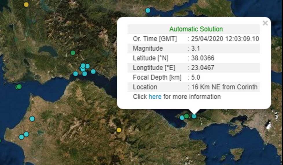 Σεισμός σημειώθηκε στις 15:03′ το μεσημέρι του Σαββάτου (25.04.2020) αυτή τη φορά βορειοανατολικά της Κορίνθου.
