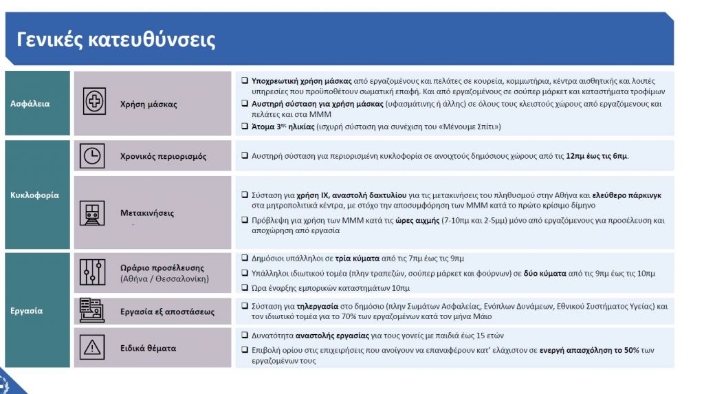 Το ωράριο λειτουργίας θα ξεκίνα στις 10:00 πμ ενώ θα είναι επιβεβλημένη η χρήση μάσκας από εργαζόμενους και καταναλωτές, η τήρηση απόστασης 2 μέτρων, καθώς και η χρήση μάσκας και αντισηπτικών.