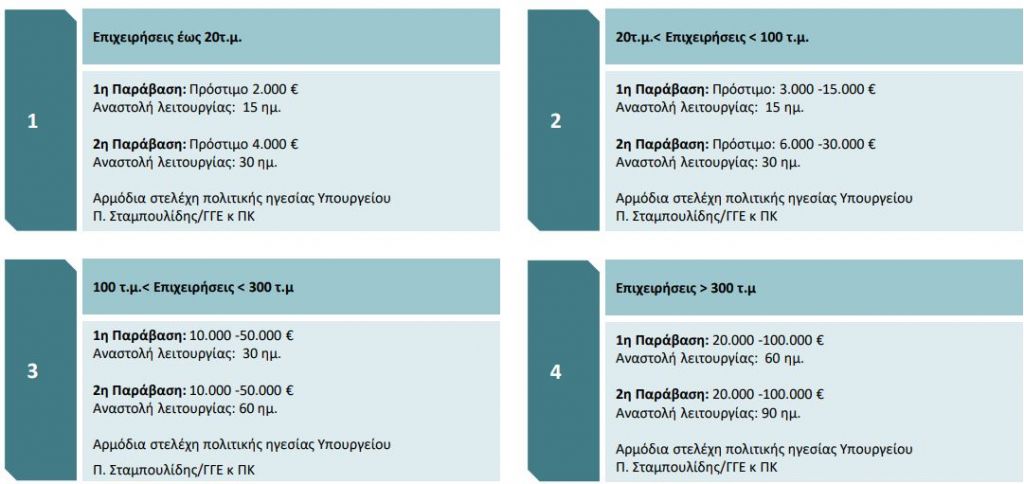 Η μη τήρηση των κανόνων επιφέρει τσουχτερά πρόστιμα και αναστολή λειτουργίας της επιχείρησης. Το ύψος του προστίμου εξαρτάται από το μέγεθος της επιχείρησης και φυσικά γίνεται πιο βαρύ σε περίπτωση και δεύτερης παράβασης.