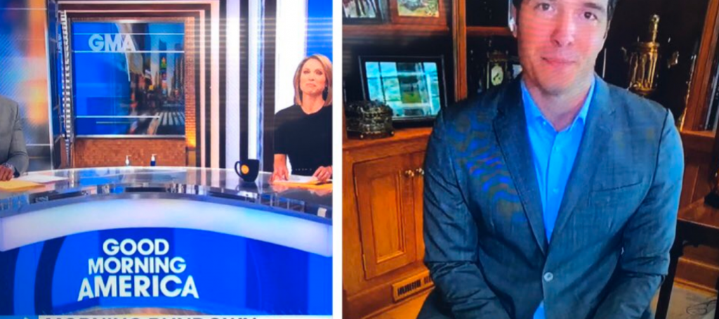 Συγκεκριμένα, βγήκε live από το σπίτι του στην εκπομπή Good Morning America για δώσει το ρεπορτάζ σχετικά κάποια φαρμακεία που εξυπηρετούν τους πελάτες με drones εν μέσω πανδημίας.
