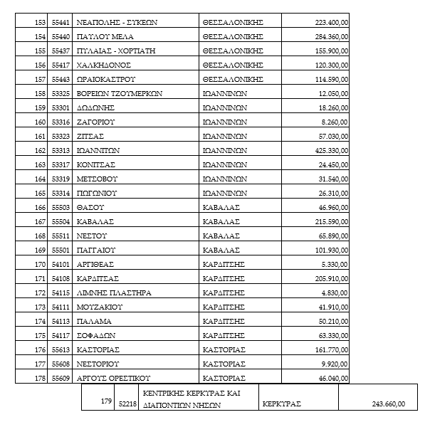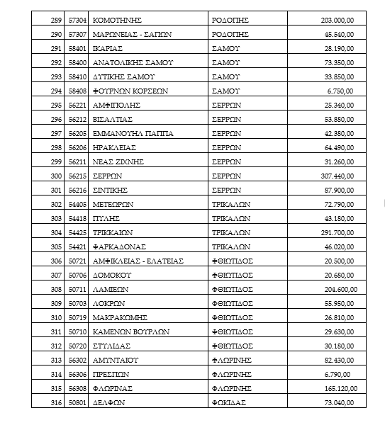 Συγκεκριμένα τα χρήματα κατανέμονται με απόφαση του υπουργού Εσωτερικών Τάκη Θεοδωρικάκου από τους Κεντρικούς Αυτοτελείς Πόρους στους 332 δήμους της χώρας ως εξής: