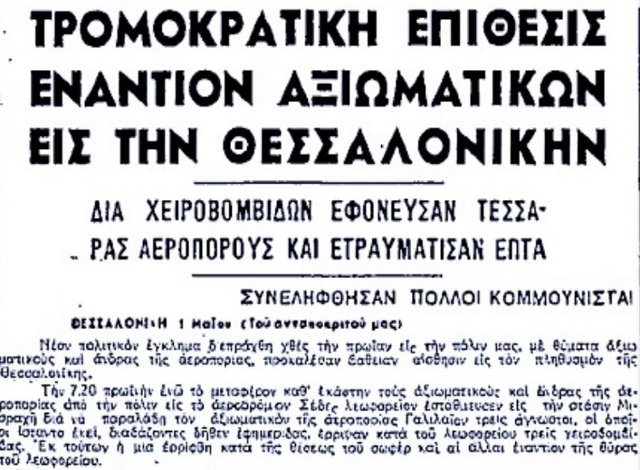 Στις 30 Απριλίου 1947 τρία μέλη της ΟΠΛΑ Θεσσαλονίκης επιτέθηκαν με χειροβομβίδες κατά λεωφορείου της Πολεμικής Αεροπορίας, που μετέφερε στελέχη της στο αεροδρόμιο του Σέδες.