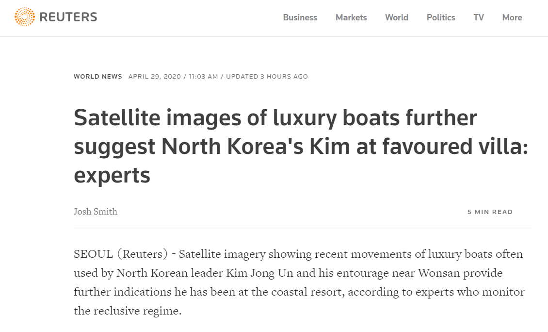 Οι τελευταίες εικόνες διαδέχονται μια πρόσφατη έκθεση του ιστότοπου 38 North που εδρεύει στις ΗΠΑ, ο οποίος ανέφερε ότι δορυφορικές φωτογραφίες δείχνουν πιθανόν το τρένο του στη βίλα του στο Ουονσάν.