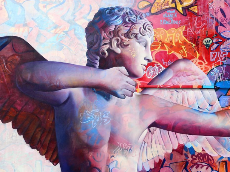 Οι καλλιτέχνες δρόμου είχαν απεικονίσει τον ρωμαϊκό θεό Έρωτα σε ένα πρότζεκτ στην Ιταλία το 2018 και, μιλώντας στο Colossal, διευκρίνισαν ότι η πρόσφατη τοιχογραφία τους είναι προέκταση της γοητείας που ασκεί πάνω τους ο θεός της αγάπης και του πόθου.