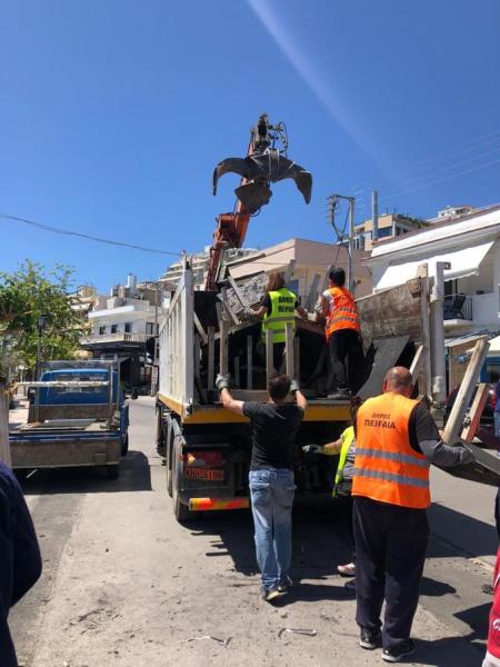Αμεσα ο δήμος Πειραιά ευαισθητοποιήθηκε κι έσπευσε να βοηθήσει για τον καθαρισμό του χώρου που επλήγη από τη φωτιά.